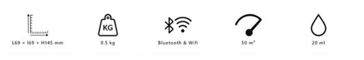 Dimensions de l’appareil : 69 x 69 x 145 mm